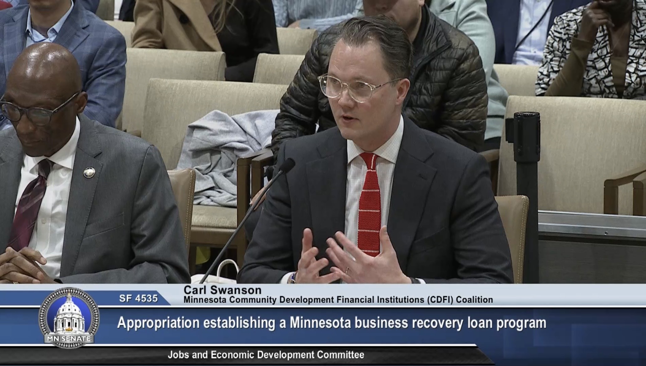 Good afternoon, thank you for this opportunity to speak on the importance of small business relief. My name is Carl Swanson, I am the Coalition Strategist for the Minnesota CDFI Coalition. CDFI stands for Community Development Financial Institution, this is a federal certification through the US Department of the Treasury.